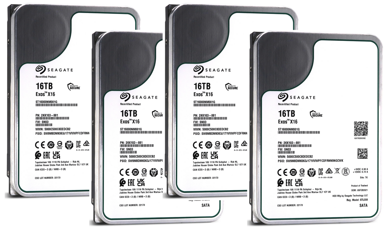 4 Pack Recertified Seagate EXOS X16 16TB ST16000NM001G 3.5" ENTERPRISE CMR HARD DRIVE