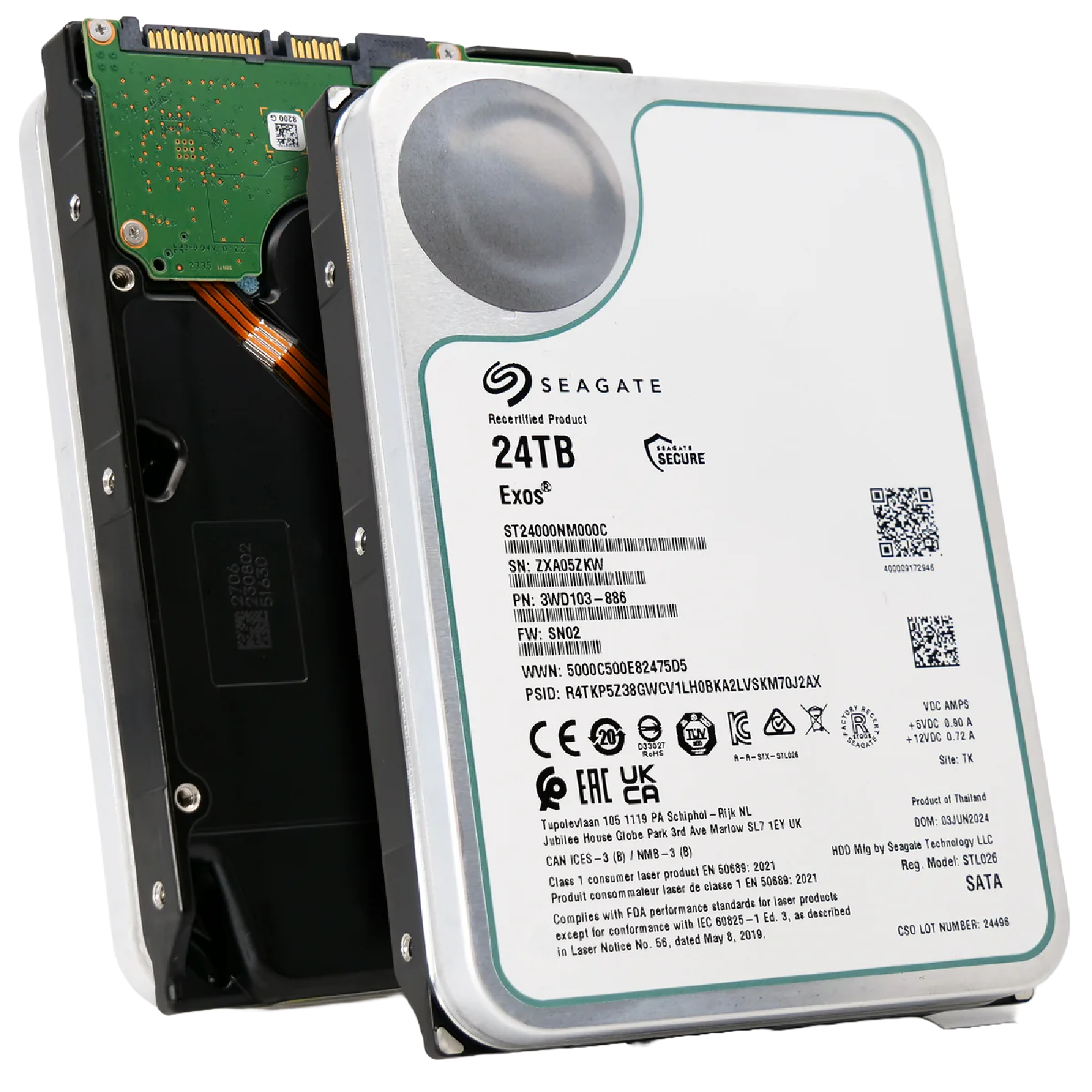Recertified Seagate EXOS 24TB ST24000NM000C ENTERPRISE 3.5" SATA III CMR HARD DRIVE