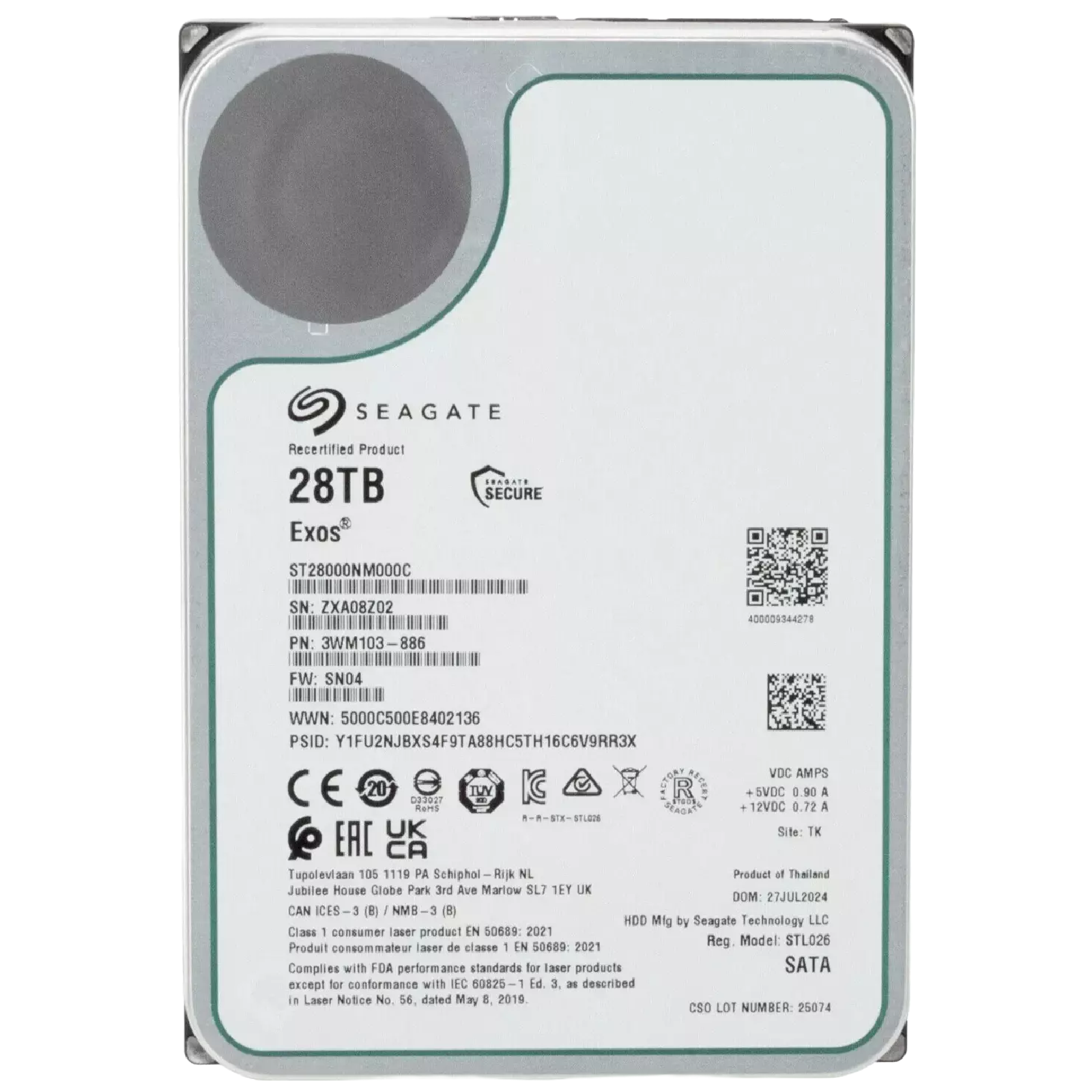 Recertified Seagate EXOS 28TB ST28000NM000C ENTERPRISE 3.5" SATA III CMR HARD DRIVE
