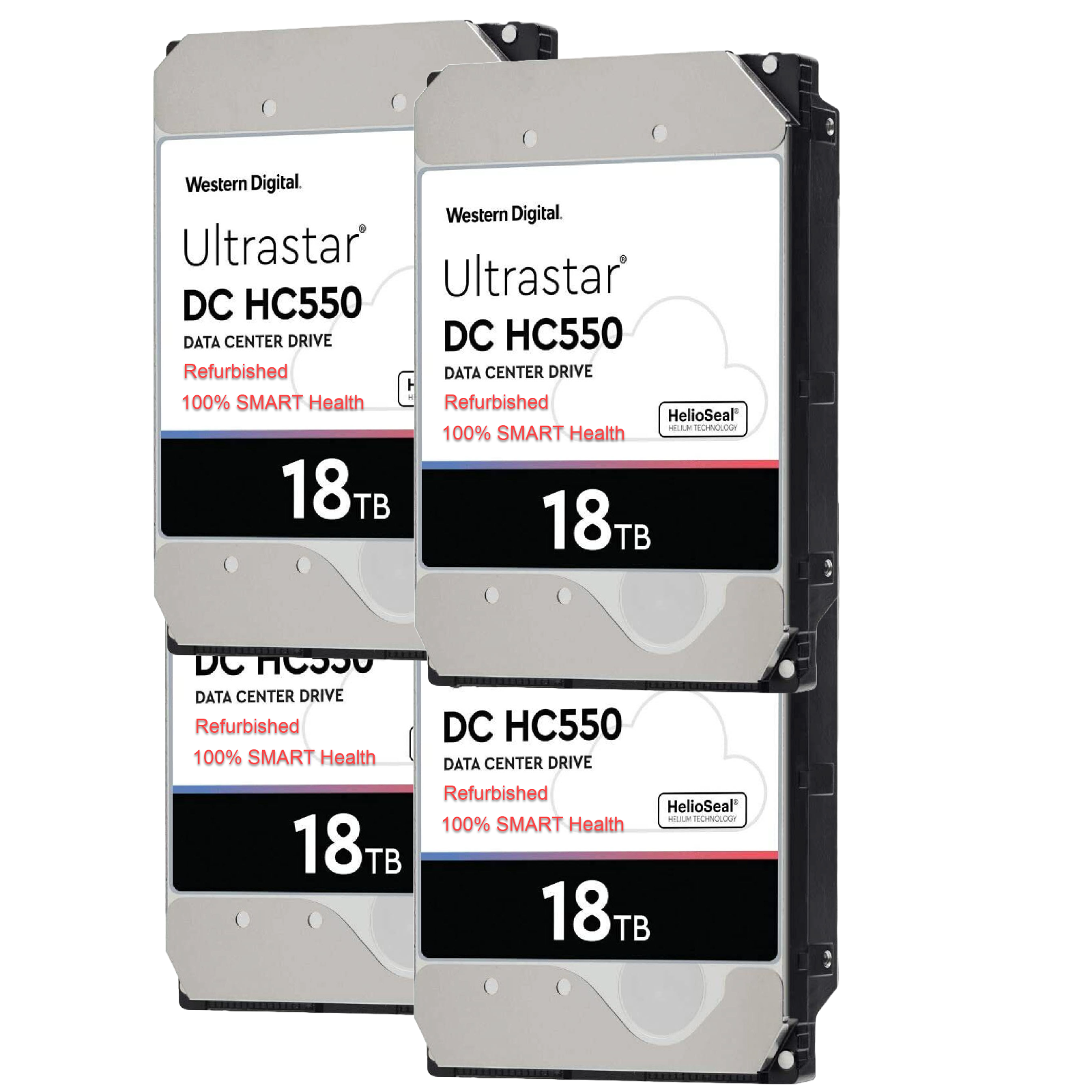 4 Pack Refurbished WD Ultrastar DC HC550 18TB 3.5" SATA SE CMR HDD WUH721818ALE6L4 OEM